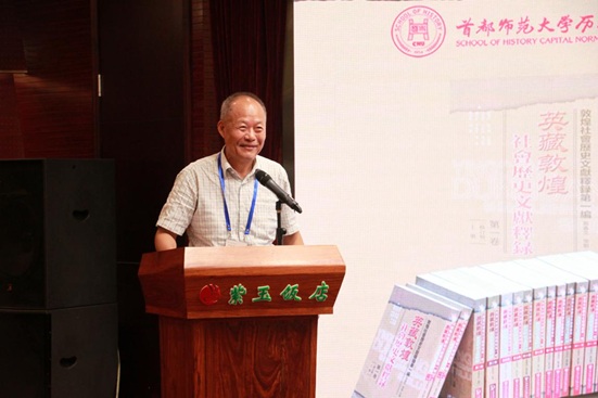 郝春文教授首先介绍了《英藏敦煌社会历史文献释录》的编纂情况。他指出《英藏敦煌社会历史文献释录》1至15卷是国家社科基金重大招标项目“英藏敦煌社会历史文献整理与研究”的阶段性成果,这个项目是国家社科基金面向基础硏究的第一批重大招标项目,也是我国敦煌学界和首都师范大学的第一个国家社科基金重大项目,它的最终目标是收录英国国家图书馆收藏的全部敦煌社会历史文献,第1至15卷收录S.10号至S.3330号中有关社会历史文献写本1087号,1259件文书,总字数540万。预计全部完成是30卷,一千多万字。