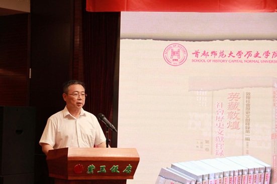 2018年7月22日,《英藏敦煌社会历史文献释录》(1-15卷)出版发布会在北京紫玉饭店举行。孟繁华校长、历史学院郝春文教授、历史学院刘屹院长、全国哲学社会科学工作办公室孙璐女士以及来自北京大学、北京师范大学、中国社会科学院历史研究所、中国人民大学、南开大学、浙江大学、武汉大学、吉林大学、中央民族大学、云南大学、甘肃简牍博物馆、台湾中央大学、台湾中正大学、台湾中国文化大学、日本东京大学、日本中央大学的五十多位知名学者出席了本次发布会。